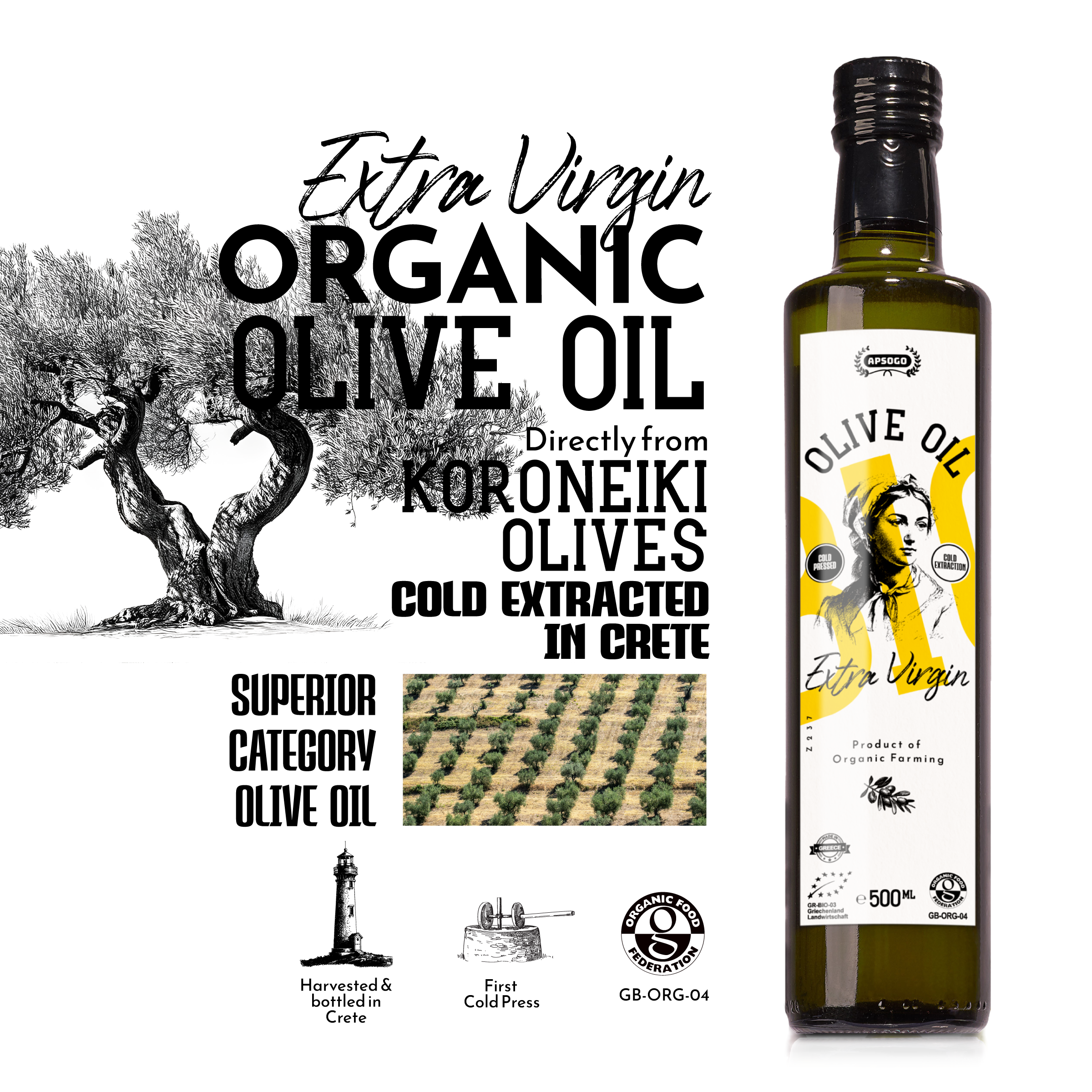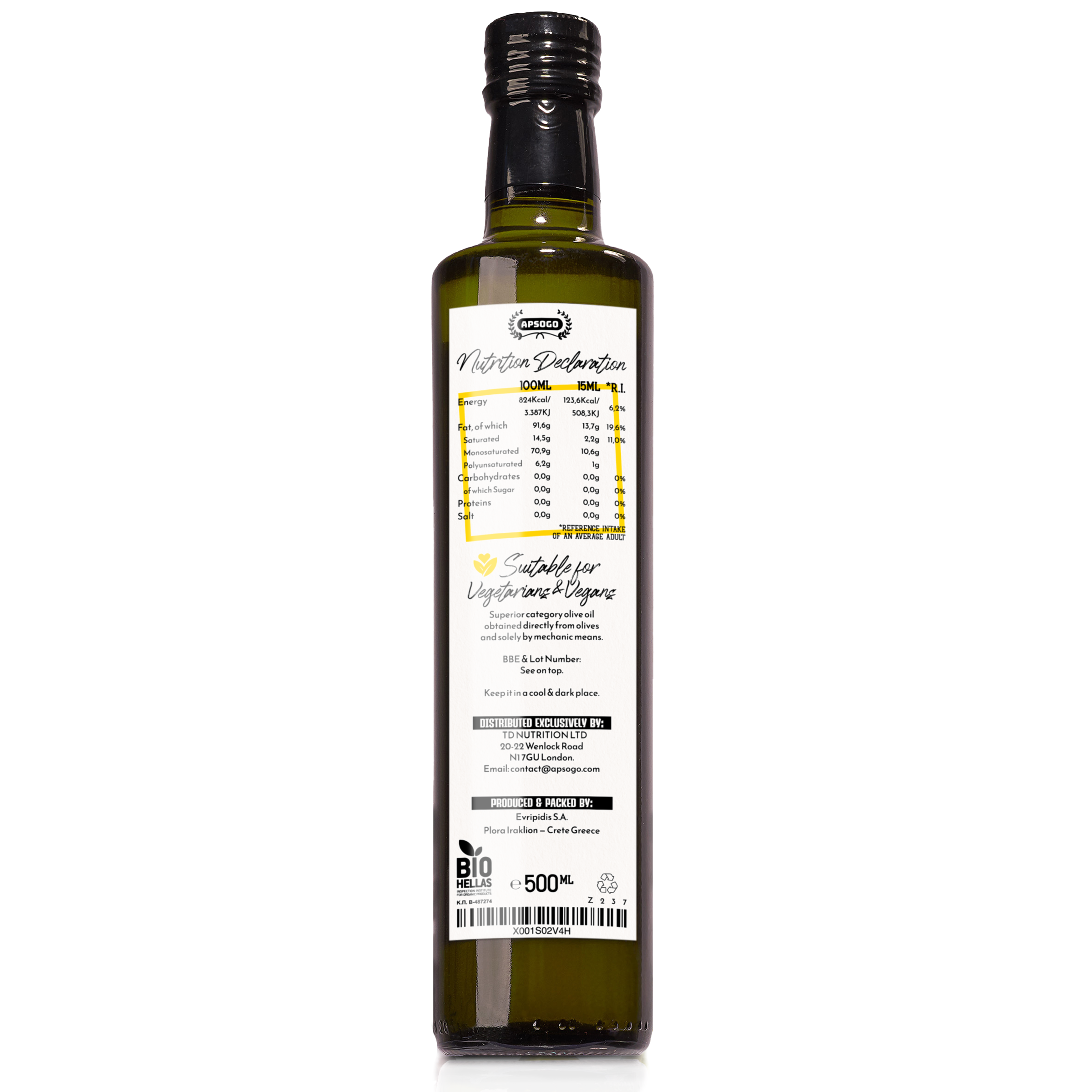 Apsogo Organic Greek Extra Virgin Olive Oil - Premium Cold Pressed Olive oil from Greece – 500ml