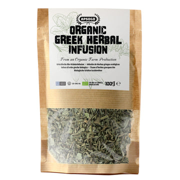 APSOGO Organic Greek Herbal Infusion - Loose Leaf Blend with Mountain Tea, Sage, Lemon Balm & Dittany - Caffeine-Free - Eco Pouch - 100g